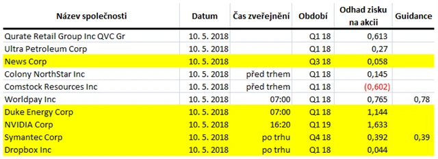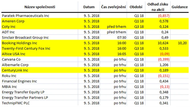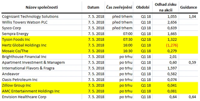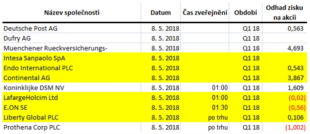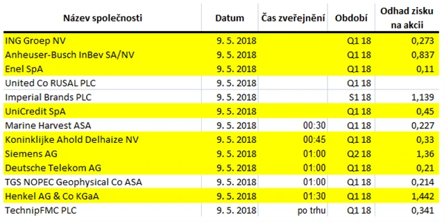 Poznámka: Odhady analytiků jsou aktuální k 3. 5. 2018.