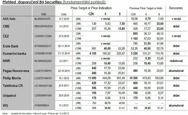 Burza Praha: Přehled investičních doporučení na české akcie