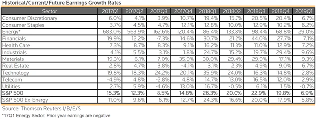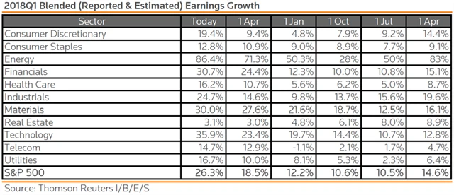 Jak se vyvíjely odhady růstu či poklesu zisků a tržeb za 1Q2018?