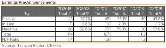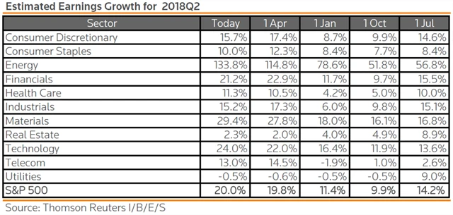 Jak se vyvíjejí odhady růstu či poklesu zisků za 2Q2018?
