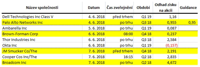 Které světové firmy představí výsledky hospodaření za uplynulý kvartál v týdnu od 4. června a jaké zisky v rámci indexu S&P 500 a od jednotlivých společností očekávají analytici oslovení agenturami Thomson Reuters a Bloomberg?