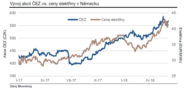 "Cena akcií ČEZ dosáhla naší dosavadní cílové ceny v polovině dubna. Pokračující růst cen silové elektřiny podpořený vyššími cenami uhlí a výrazným nárůstem cen emisních povolenek je jedním z klíčových faktorů, který se začne ve výsledcích hospodaření firmy pozvolna projevovat od příštího roku, výraznější vliv by pak měl být patrný v roce 2020. V dlouhodobém horizontu vidíme potenciál pro růst cen díky snižování výrobních kapacit konvenčních zdrojů v Německu po roce 2020," napsal Miroslav Frayer.
