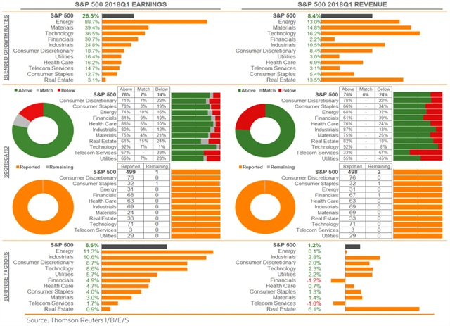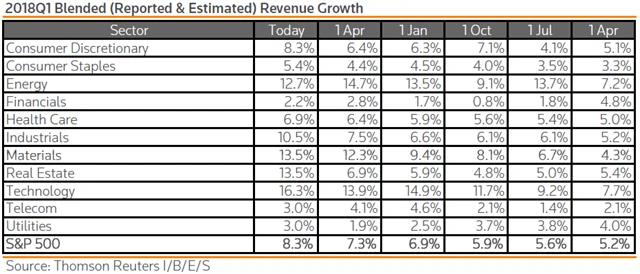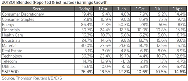 Jak se vyvíjely odhady růstu či poklesu zisků a tržeb za 1Q2018?