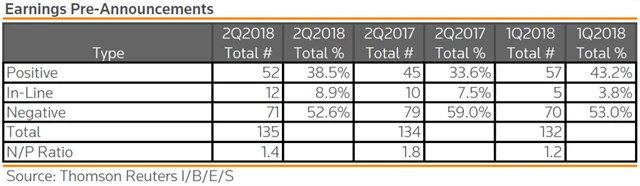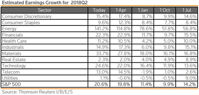 Jak se vyvíjejí odhady růstu či poklesu zisků za 2Q2018?