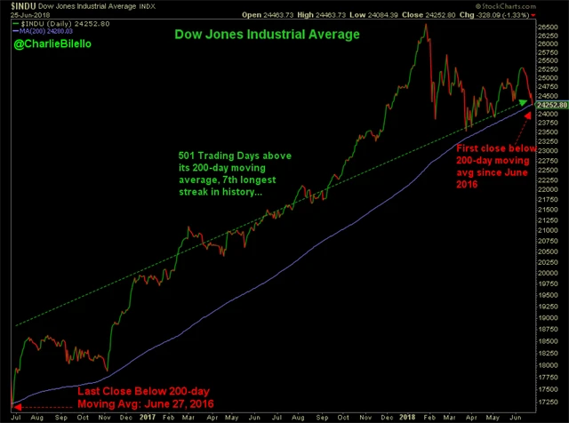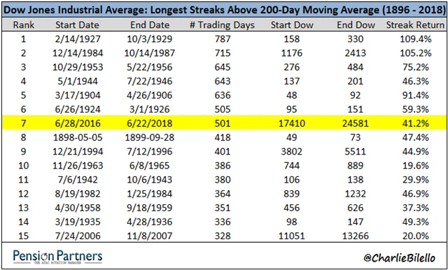 Tím skončila nejdelší šňůra obchodních dnů, kdy benchmark uzavřel nad 200denním průměrem, od roku 1987. Celkem jich bylo 501. Historicky jde o sedmou nejdelší takovou sérii.