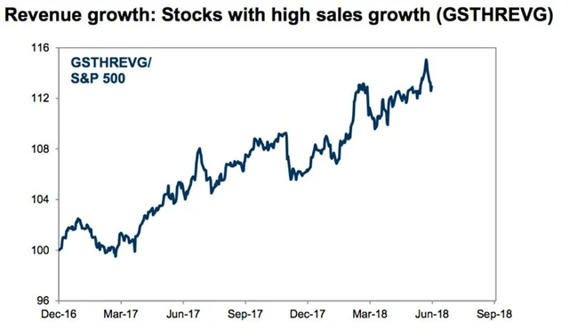 Firmy s nejvyšší mírou růstu tržeb by měly v prostředí zpomalujícího růstu ekonomiky překonávat průměr trhu. Mezi takové společnosti Goldman Sachs řadí třeba Netflix, Amazon, Campbell Soup nebo Salesforce.com.