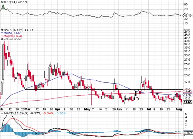 Index volatility VIX je na minimech. Dokud zůstane pod 15, pro akcie bude vysílat býčí signál.