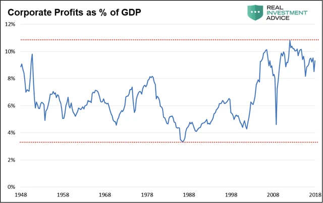 Ačkoli jsme tedy svědky nejdelší expanze od druhé světové války, není to důvod k přehnané radosti. V dlouhodobém horizontu totiž mohou zisky růst jen zhruba tak rychle, jak rostou tržby, a jejich růst je většinou podobný růstu celé ekonomiky (samozřejmě je podstatné, jaké sektory zrovna na trhu dominují, v některých totiž mohou být data výrazně lepší). Z toho vyplývá, že růst zisků je omezován "ekonomickou gravitací", a je tedy zřejmé, že firemní zisky svého vrcholu dost možná dosáhly právě v první polovině roku 2018.