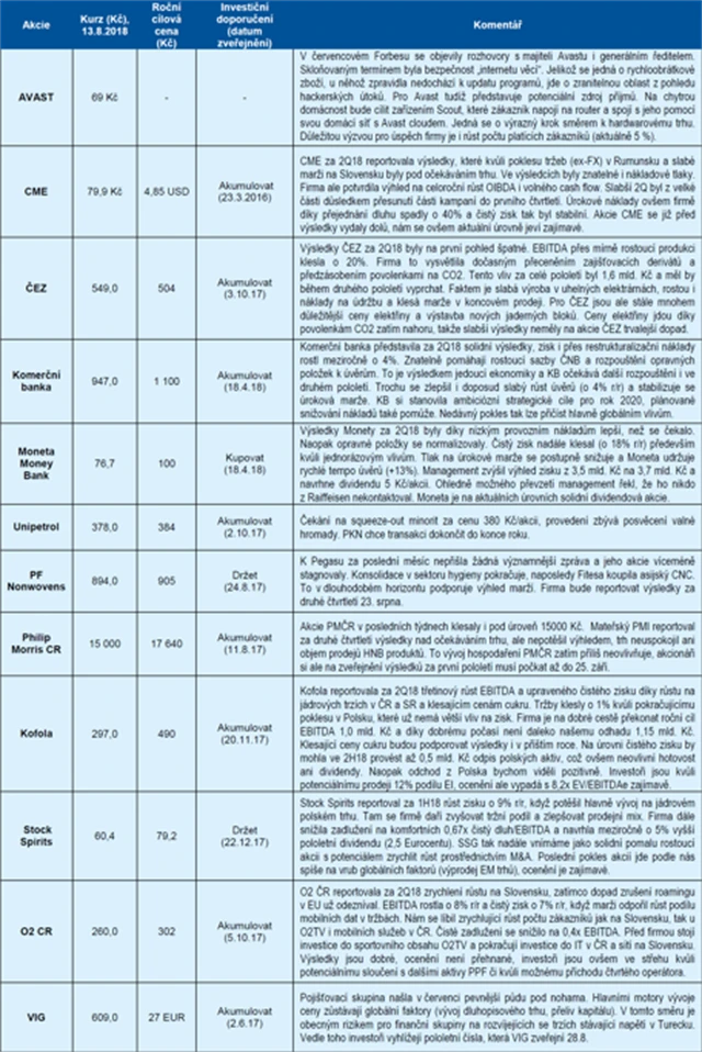 Jaký výhled mají analytici z České spořitelny pro domácí akciový trh v polovině srpna 2018? (15. 8. 2018)