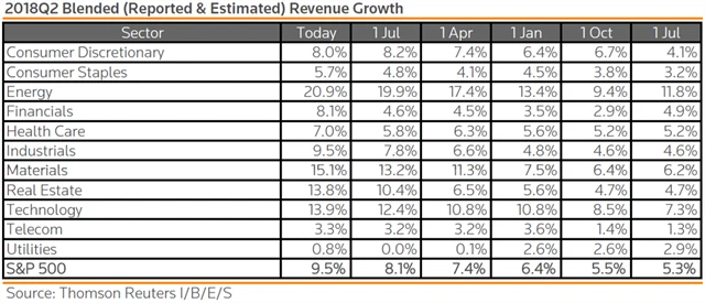 Jak se vyvíjely odhady růstu či poklesu zisků a tržeb za 2Q2018?