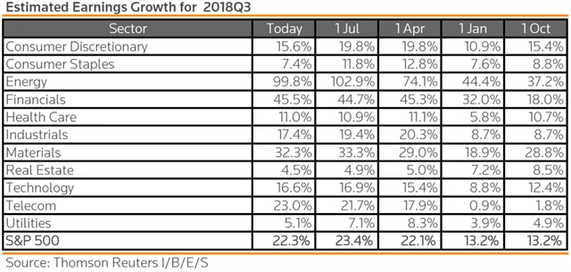 Jak se vyvíjejí odhady růstu zisků za 3Q2018?