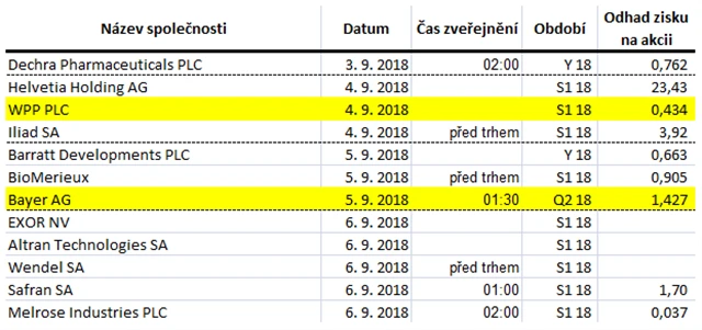 Očekávané výsledky světových firem v týdnu od 3. září