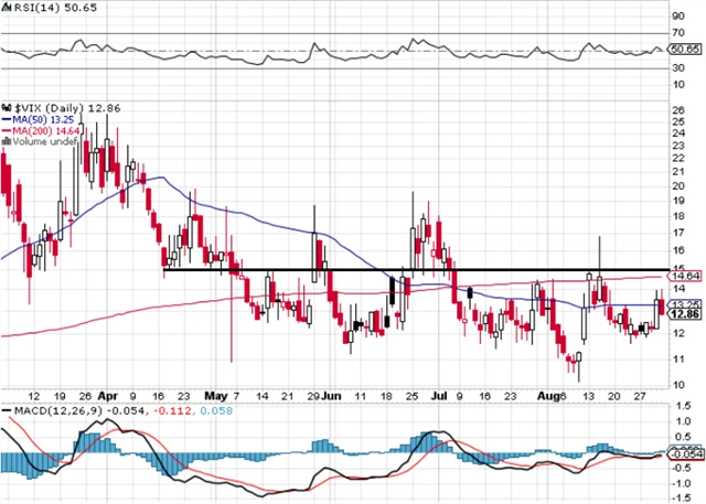 Index volatility VIX tentokrát v týdenním vyjádření vzrostl společně s cenami akcií. Je ale stále pod 15, takže pro akcie nadále vysílá býčí signál.