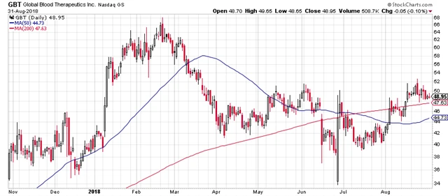Další zástupce biotechnologického odvětví, který se zaměřuje na vývoj a výrobu léků, se specializací na preparáty na srpkovitou chudokrevnost. Hlavním želízkem v ohni je lék voxelotor, který je, podobně jako u CymaBay Therapeutics, ve 3. fázi klinických testů a odborníci si od něj hodně slibují, protože by měl výrazně pomoci při léčbě krevních onemocnění.