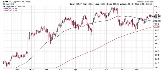 Jeden z předních poskytovatelů outsourcovaných dopravních a logistických služeb se blýskl skvělými čísly za druhé čtvrtletí, oznámil miliardu nových příjmů a míří za ročními příjmy ve výši 2,1 miliardy dolarů. "Když dáme dohromady silný trend u XPO s potenciálem pro zajímavé akvizice na obzoru, naše cílová cena zůstává na 119 USD," říká Scott Schneeberger ze společnosti Oppenheimer.