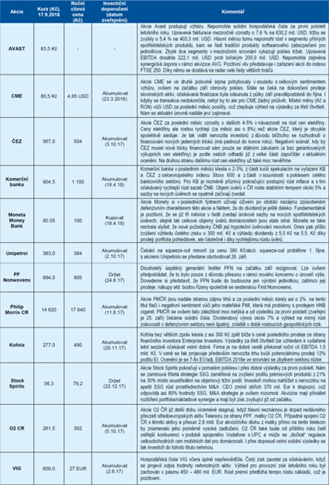 ČS: Zářijová strategie pro české akcie (18. 9. 2018)