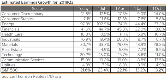 Jak se vyvíjejí odhady růstu zisků za 3Q2018?