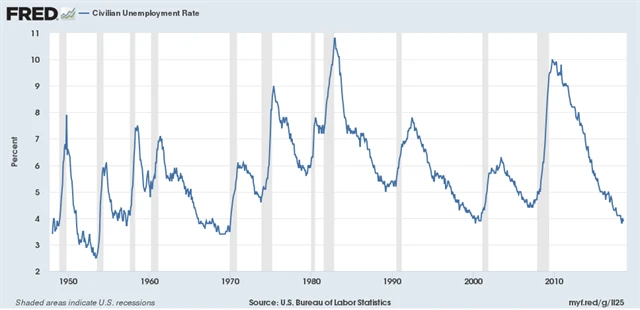 Míra nezaměstnanosti v USA se letos v květnu dostala až na 3,8 %, kde byla naposledy v dubnu 2000. Mezi lety 1970 a 1999 míra nezaměstnanosti nikdy neklesla pod 4 %.