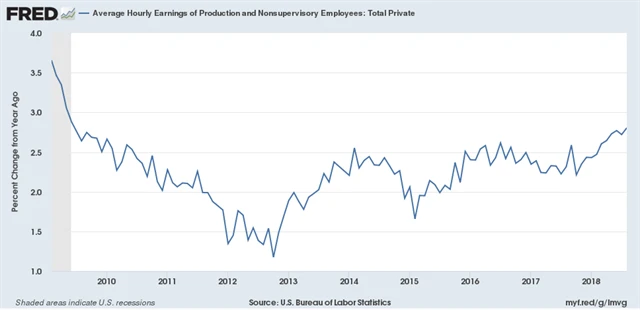 Vznikajících pracovních míst je více než lidí aktivně hledajících práci. Z ekonomické teorie vyplývá, že nízká nabídka a vysoká poptávka by měly vést ke zvýšení ceny (mezd). Od konce roku 2012, kdy byl růst mezd historicky velice nízký, rostou mzdy stále rychleji, i když někteří ekonomové by možná očekávali ještě lepší čísla.