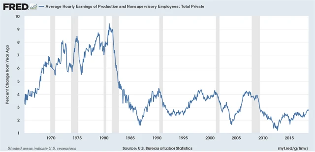 A pohled do historie jim dává za pravdu. Současný růst mezd je ve srovnání se začátkem 80. let stále poměrně nevýrazný.
