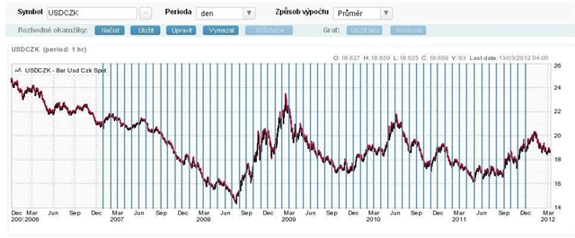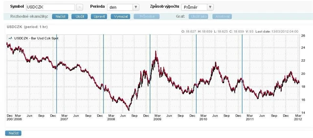 USDCZK: Zadání výpočtu typického průměrného roku. Bylo zadáno období 2006 až 2011.