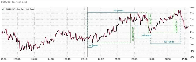 Euro bývá silné vůči dolaru od začátku února až do začátku prázdnin. Čím později směníme eura na dolary, tím lépe – za jedno euro dostaneme více dolarů. Přes léto to však neplatí, během něj euro většinou vůči dolaru oslabuje. Od poslední třetiny srpna až do začátku prosince znovu posiluje evropská měna.