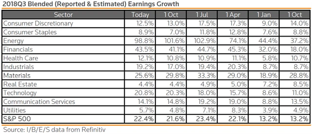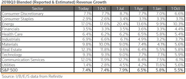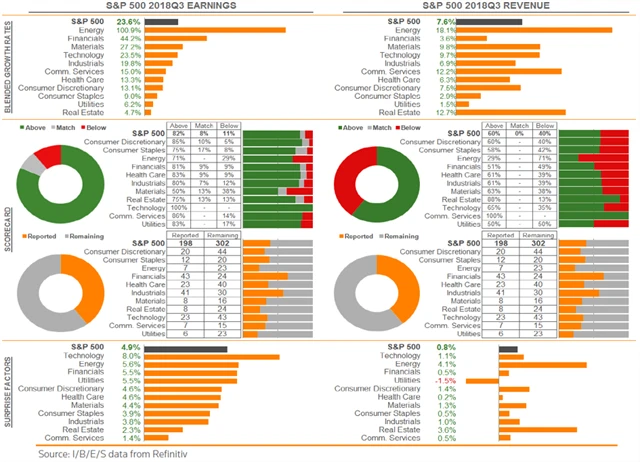 Jak se vyvíjejí odhady růstu zisků a tržeb za 3Q2018?