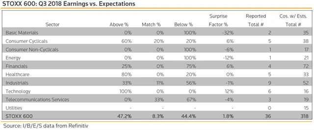 Jaká překvapení přinesly výsledky evropských firem za 3Q2018?