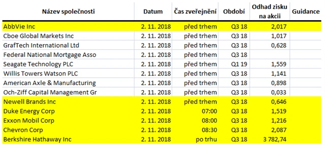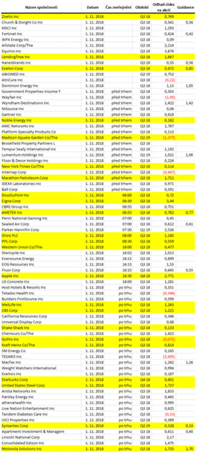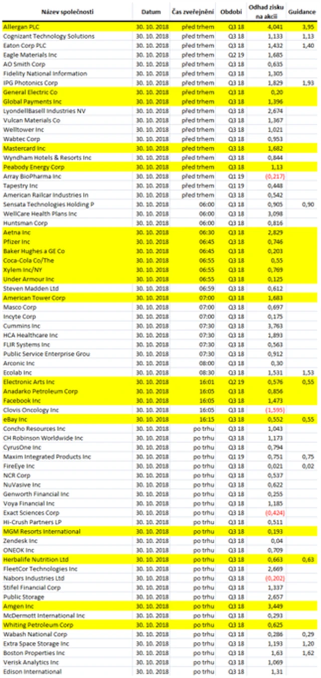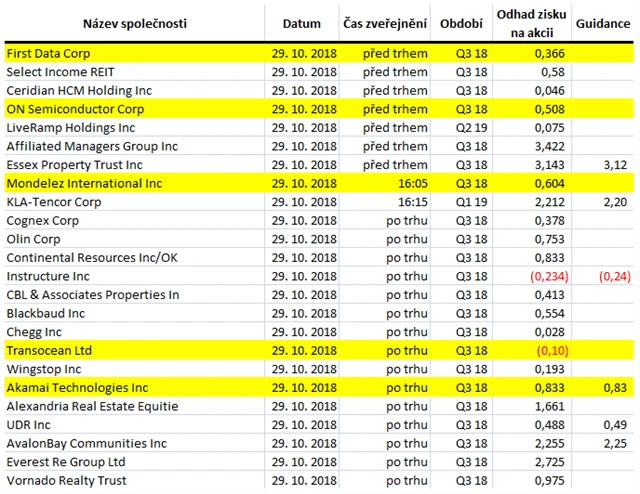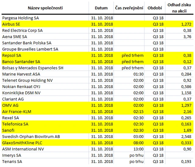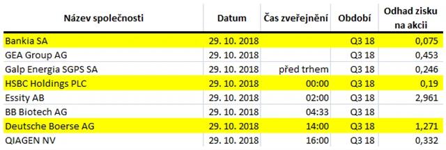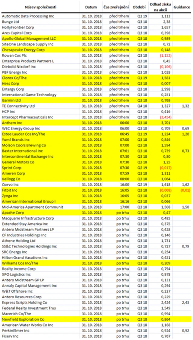 Poznámka: Odhady analytiků jsou aktuální k 25. 10. 2018.