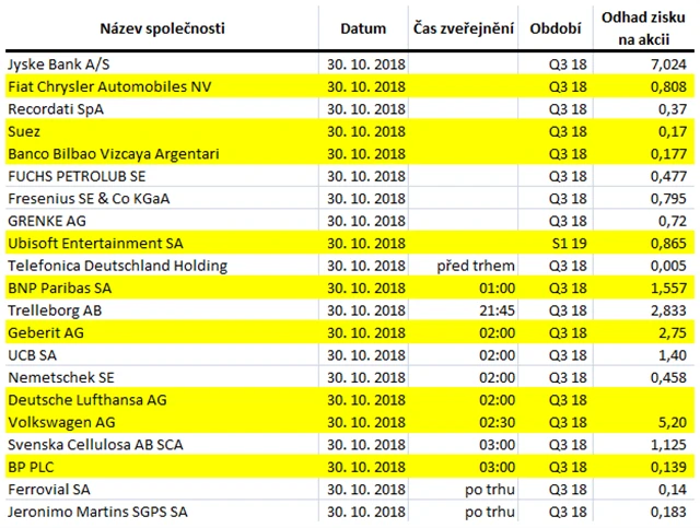 Jaké výsledky za 3Q2018 analytici čekají od evropských firem?