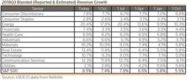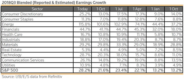 Jak se vyvíjejí odhady růstu zisků a tržeb za 3Q2018?