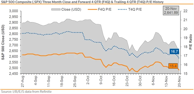 Které světové firmy představí výsledky hospodaření za uplynulý kvartál v týdnu od 26. listopadu a jaké zisky v rámci indexu S&P 500 a od jednotlivých společností očekávají analytici oslovení agenturami Bloomberg a Refinitiv?