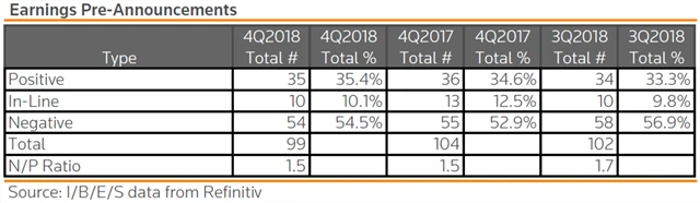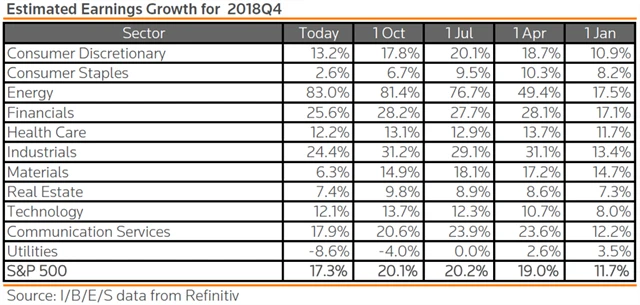 Jak se vyvíjejí odhady růstu či poklesu zisků za 4Q2018?