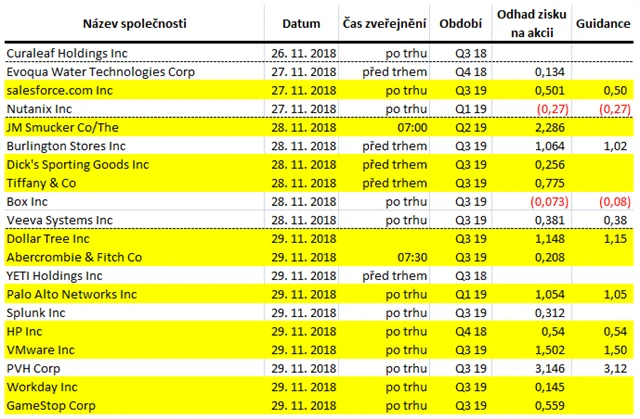 Očekávané výsledky světových firem v týdnu od 26. listopadu
