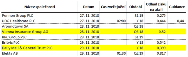 Poznámka: Odhady analytiků jsou aktuální k 22. 11. 2018.