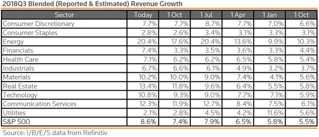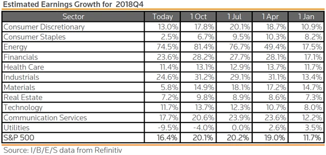 Jak se vyvíjely odhady růstu zisků a tržeb za 3Q2018?