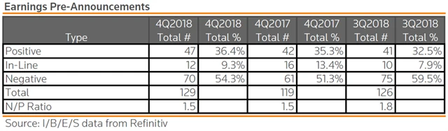 Jak se vyvíjejí odhady růstu či poklesu zisků za 4Q2018?