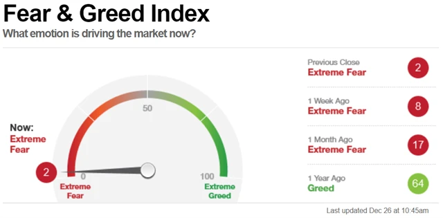 Index strachu a chamtivosti se na konci roku 2018 přiklonil jednoznačně na stranu strachu. Ukazuje to celá série indikátorů.
