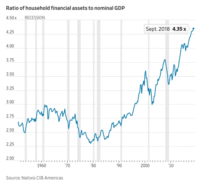 "Hodnota finančních aktiv amerických domácností je v poměru k velikosti ekonomiky rekordní. To lze za určitých okolností přeložit tak, že budoucí vývoj americké ekonomiky ještě nikdy v historii nebyl tak výrazně odkázaný na finanční trhy," říká ekonom Joseph LaVorgna. "Kolísání cen na trzích vytváří značný tlak mimo jiné na americkou centrální banku, která musí při rozhodování o nastavení měnové politiky brát v potaz i tento faktor."