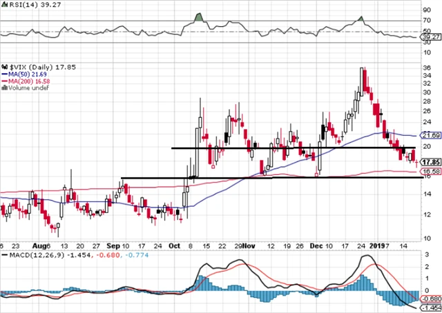 Index volatility se pomalu posouvá níže. Případný pokles pod 16 by byl pro akcie býčím signálem.