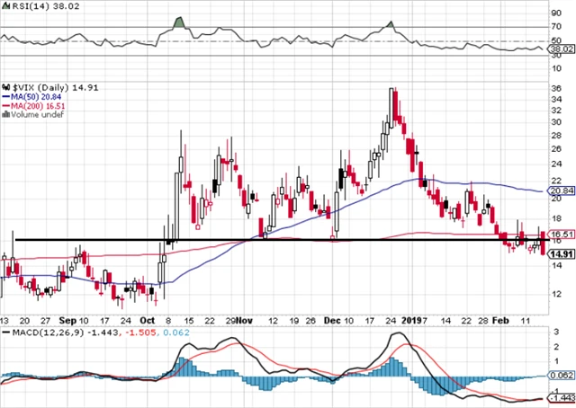 Index volatility VIX se po celý týden držel na nízkých hodnotách. Klesl lehce pod 15 bodů a pro akcie vysílá býčí signál.