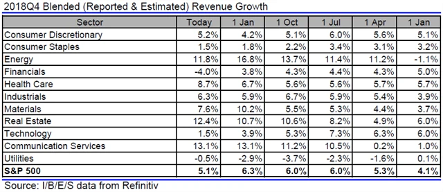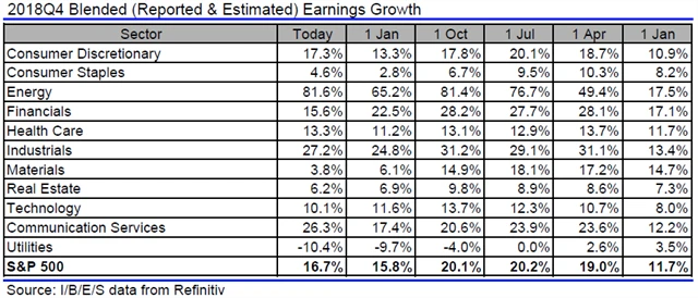 Jak se vyvíjejí odhady růstu či poklesu zisků a tržeb za 4Q2018?
