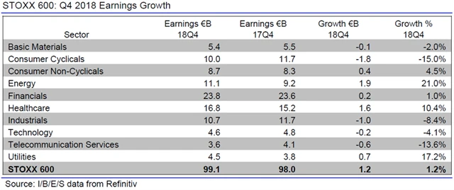 Jaký vývoj zisků a tržeb evropských firem za 4Q2018 čekají analytici?