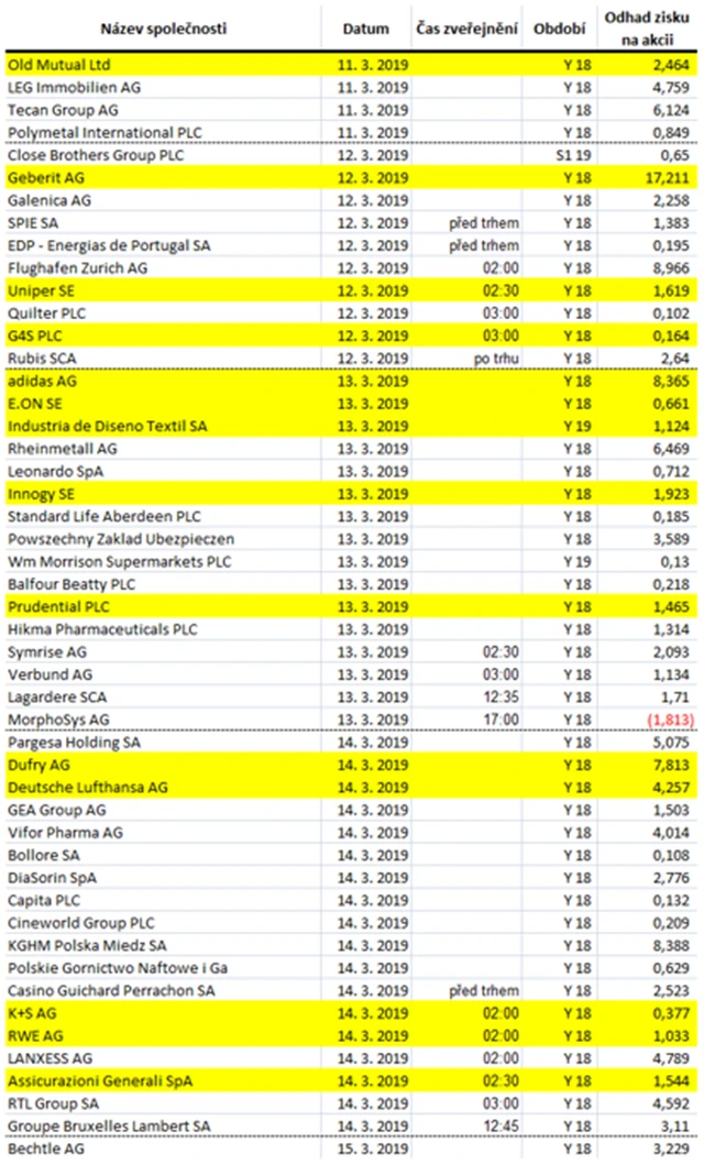 Poznámka: Odhady analytiků jsou aktuální k 5. 3. 2019.