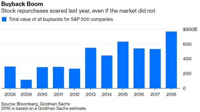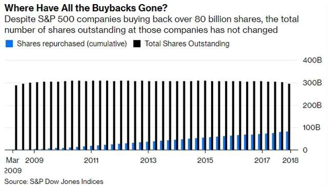 Se zpětnými odkupy akcií se v posledních letech roztrhl pytel. Mnozí investoři je považují za zbytečné plýtvání penězi a známku toho, že firmy, kromě toho, že se připravují o hotovost, neinvestují do své budoucnosti. Vzhledem k tomu, že v roce 2018 měly firmy hotovosti dostatek (i díky daňovým úlevám od prezidenta Donalda Trumpa), objem zpětných odkupů vzrostl meziročně téměř o polovinu. V roce 2018 firmy z indexu S&P 500 vyplatily společně s dividendami investorům 1,25 bilionu dolarů.