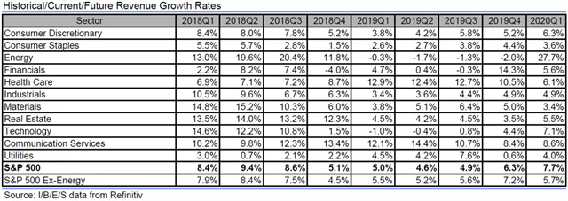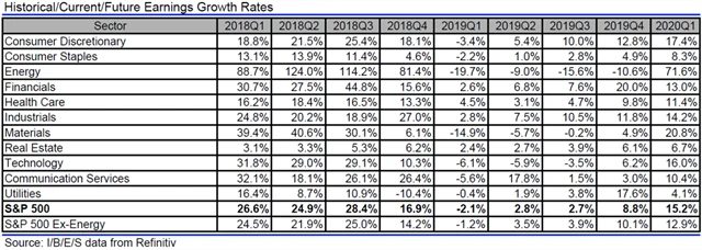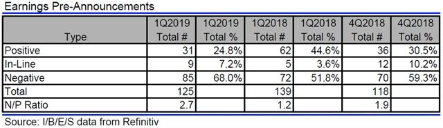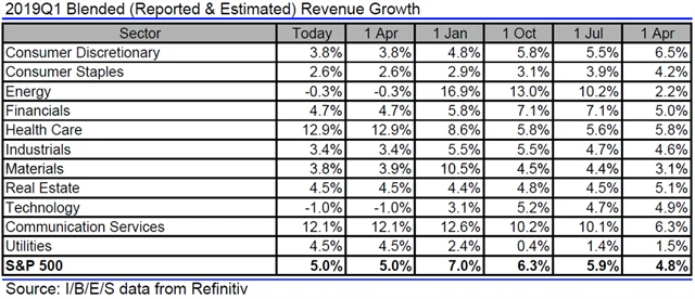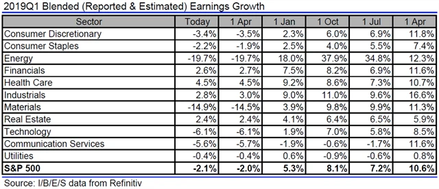 Jak se vyvíjejí odhady růstu či poklesu zisků a tržeb amerických firem za 1Q2019?
