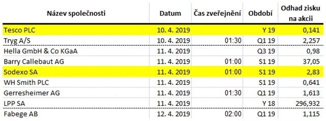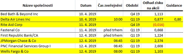 Očekávané výsledky světových firem v týdnu od 8. dubna (5. 4. 2019)