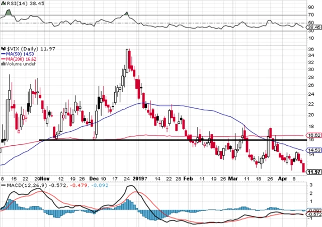 Ceny akcií jsou u maxim a index volatility VIX je nízko. Je na úrovni z dubna až září 2018 a pro akcie nyní vysílá optimistický signál. V roce 2017 byl ještě o zhruba 15 % níže, takže umí ještě klesat, zároveň loni na podzim z podobných jako současných úrovní vyrazil výše.