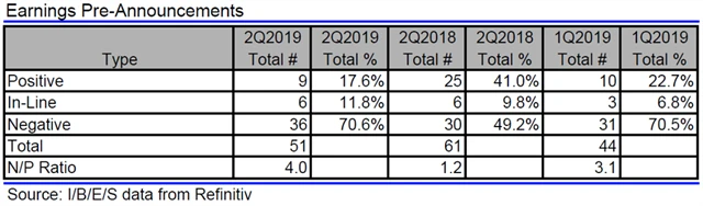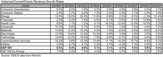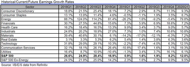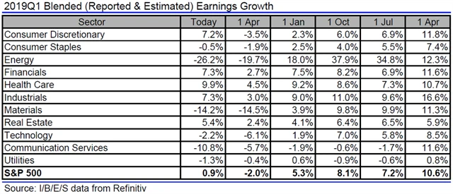 Jak se vyvíjejí odhady růstu či poklesu zisků a tržeb amerických firem za 1Q2019?