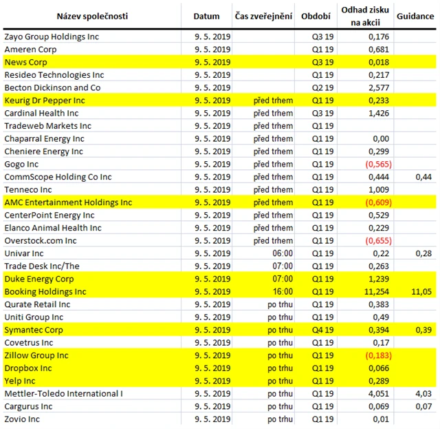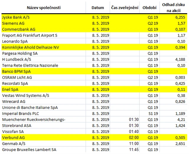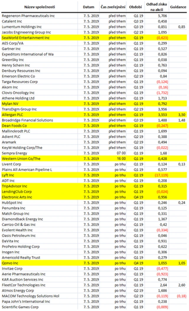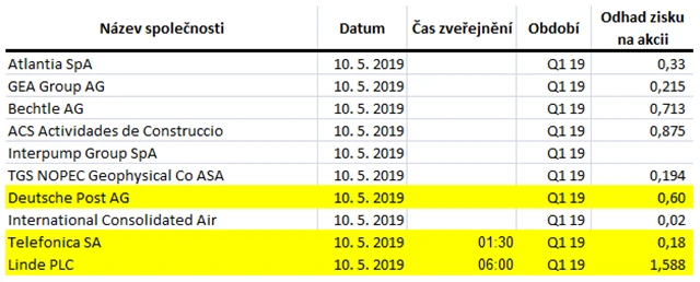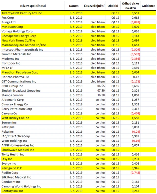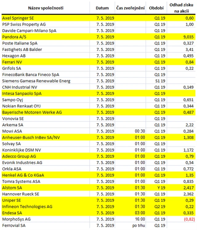 Očekávané výsledky světových firem v týdnu od 6. května (3. 5. 2019)